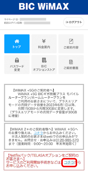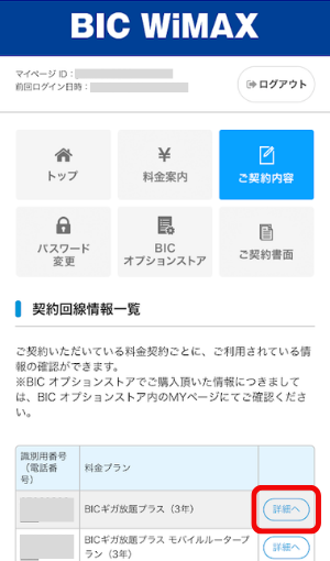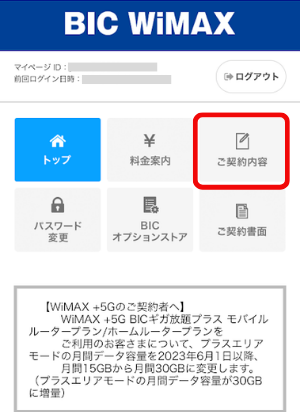 マイページにログイン後、「ご契約内容」をタップします。