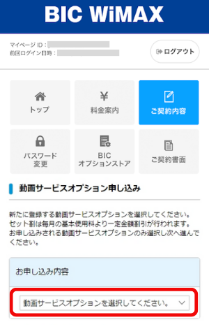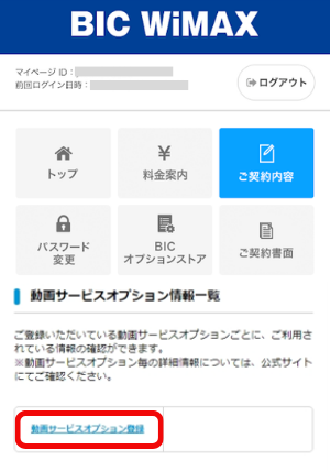 「動画サービスオプション登録」をタップします。