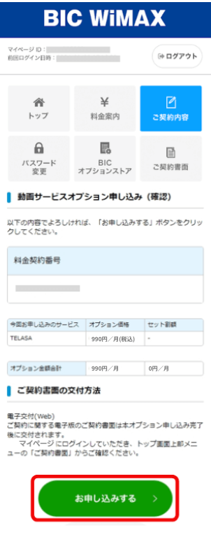 「お申し込みする」ボタンをタップします。