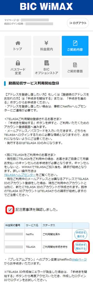「お申し込み内容」から「TELASA」を選択します。